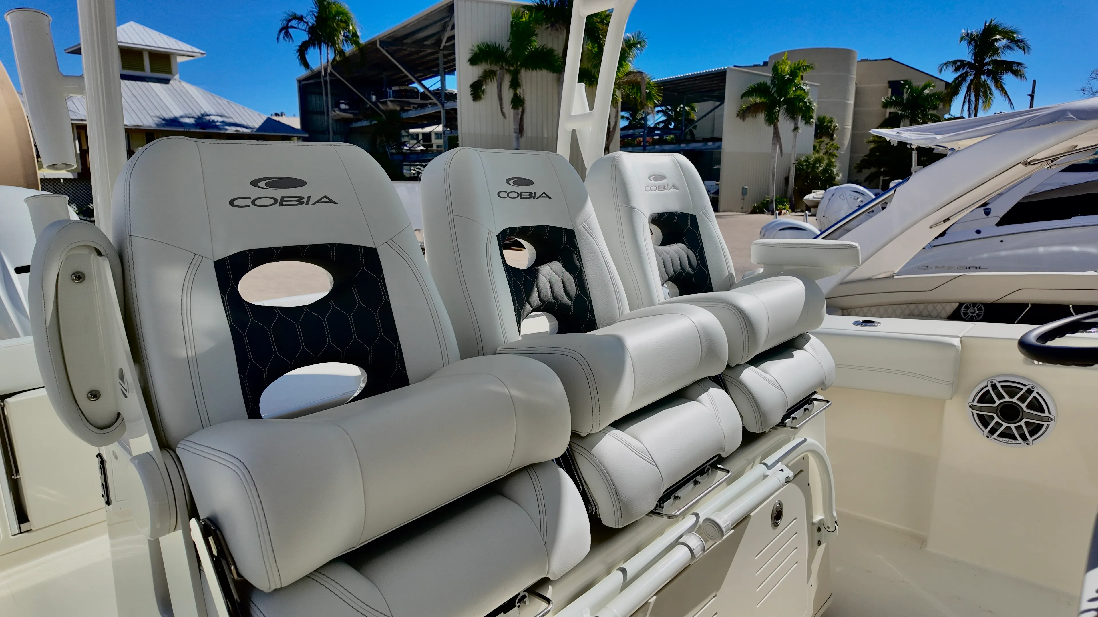 The Cobia 350 CC shines in a variety of scenarios, making it the perfect choice for families, anglers, and boating enthusiasts. Imagine hosting a family outing, where everyone can relax in comfort, enjoy music from the JL Audio speakers, and share a meal with refreshments from the onboard refrigerator. For fishing trips, the pressurized livewell pump box system and tackle station provide everything you need for a successful day on the water.Luxury getaways are elevated by the boat’s stylish design, advanced electronics, and spacious layout. Whether you’re exploring new destinations, entertaining friends, or seeking solitude on the open sea, the Cobia 350 CC adapts to your needs and exceeds expectations.