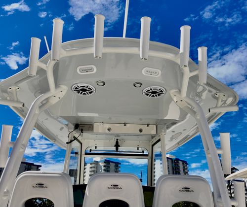 The 2025 Cobia 350 CC is a premier Center Console boat for sale, offering unmatched performance, innovative features, and luxurious comfort. With its powerful twin engines, advanced electronics package, and elegant design, this Cobia boat for sale is the ideal choice for anyone seeking adventure, relaxation, and style on the water. The hardtop with integrated frame and glass windshield, Whisper Grey hull, JL Audio speakers, and onboard refrigerator are just a few of the standout features that make this boat truly exceptional.Don’t miss your chance to own the ultimate Center Console boat. Experience the thrill, convenience, and enjoyment of the Cobia 350 CC by contacting your local dealer today for more information. Your next adventure awaits!