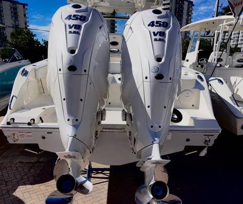 Powering the Cobia 350 CC are two high-performance engines, delivering a combined 900 horsepower. This formidable setup ensures exhilarating speed, smooth acceleration, and exceptional handling, even in challenging conditions. The twin engines provide the confidence to venture offshore, tackle long distances, and enjoy a responsive ride every time you hit the water. With advanced trim tabs and indicators, you’ll experience optimal stability and control, allowing you to fine-tune your ride for maximum comfort and efficiency. Whether you’re chasing trophy fish or cruising along the coastline, the Cobia 350 CC’s performance capabilities set it apart from other Center Console boats for sale.
